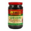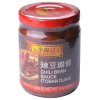 Fry doubanjiang for 1 minute over slow fire and then add garlic, scallion white, ginger and fermented black beans to cook for 30 seconds until aroma. Then mix pepper flakes in.